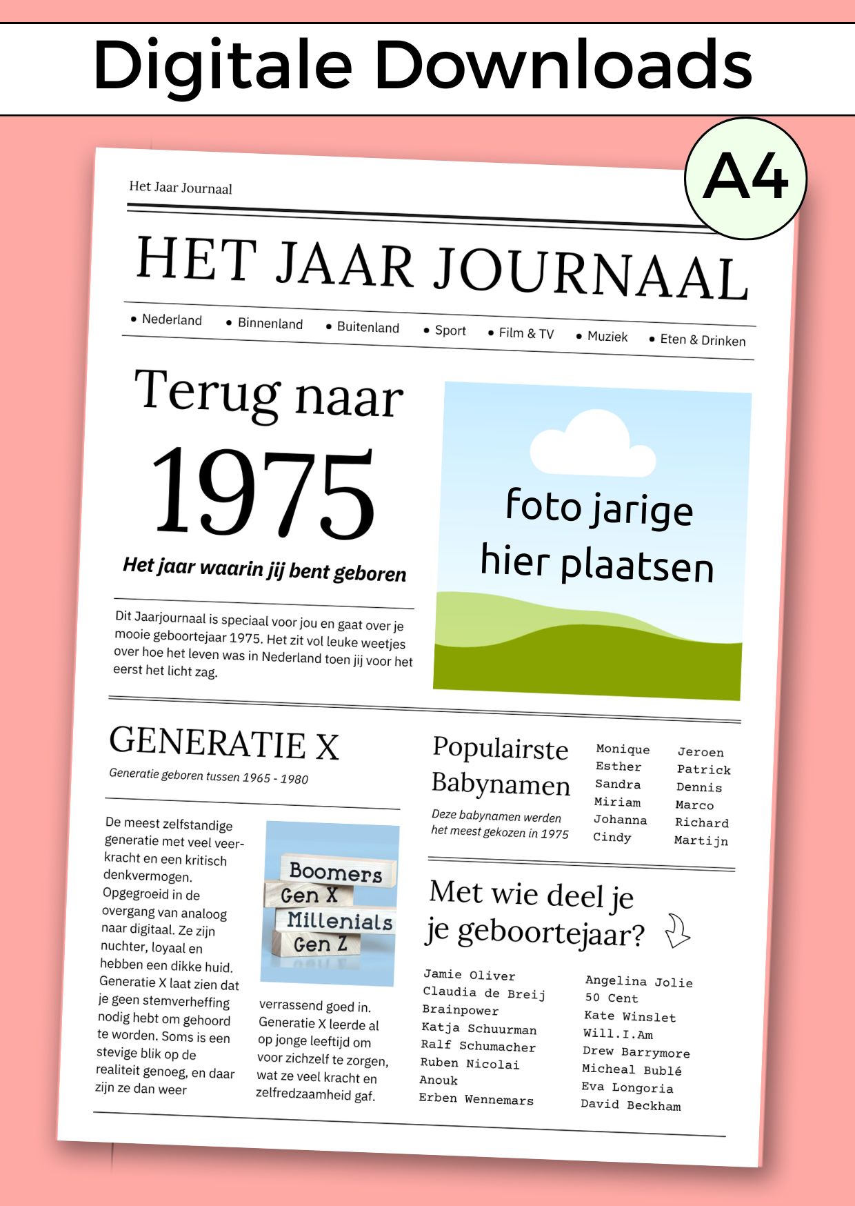 1975 Jaarkrant Verjaardag Vrouw – PDF en Canva Sjabloon
