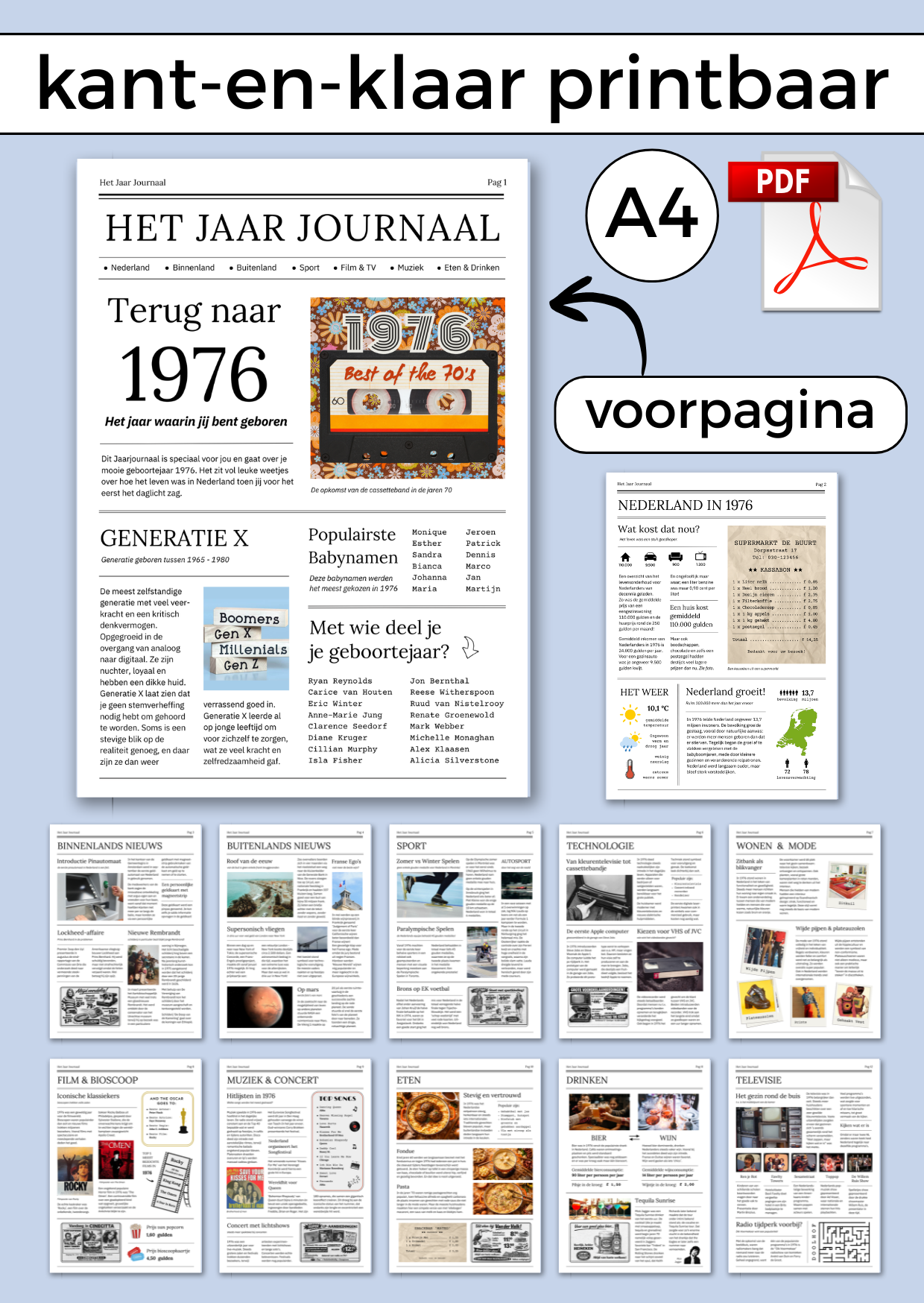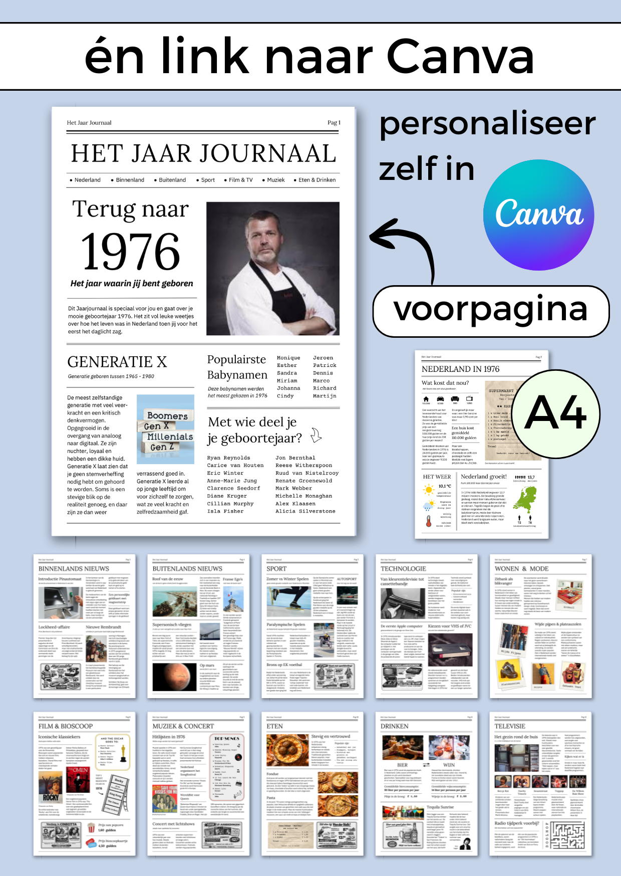 1976 Jaarkrant Verjaardag Man – PDF en Canva Sjabloon
