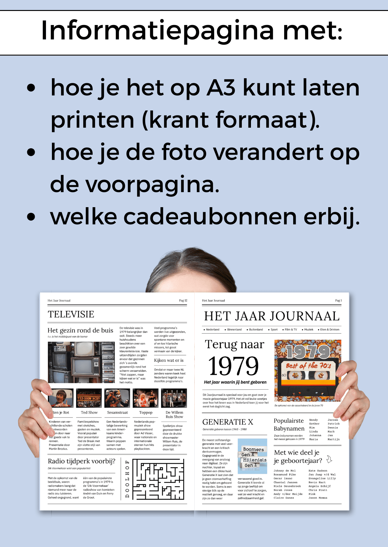 Is een goede vriend binnenkort jarig, is zijn geboortejaar 1979 en willen jullie eens iets origineels geven? Met deze Jaarkrant uit zijn geboortejaar geef je een onvergetelijk cadeau vol nostalgie aan de jarige!