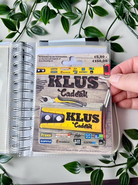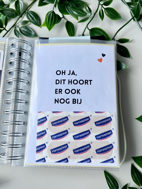 Je print de vellen uit en doet ze in een insteek fotoalbum boekje samen met de cadeaubonnen en mini cadeautjes.