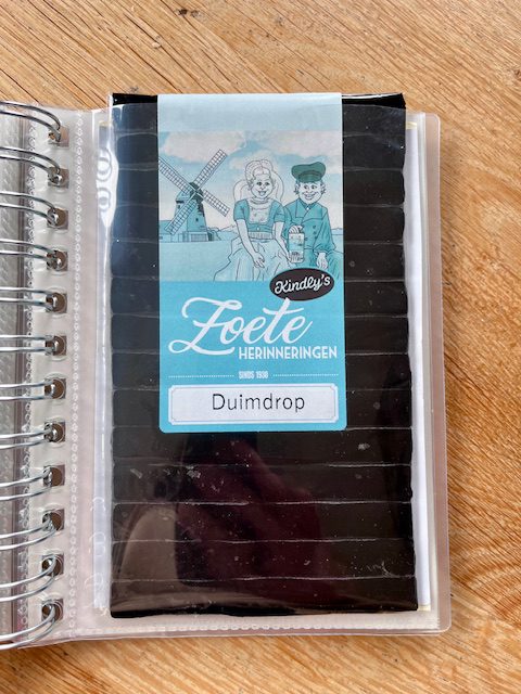 Ik kocht een foto insteekboekje bij de Hema (16 x 13) voor A6 formaat, maar de boekjes van de Action (18 x 13) passen ook prima.